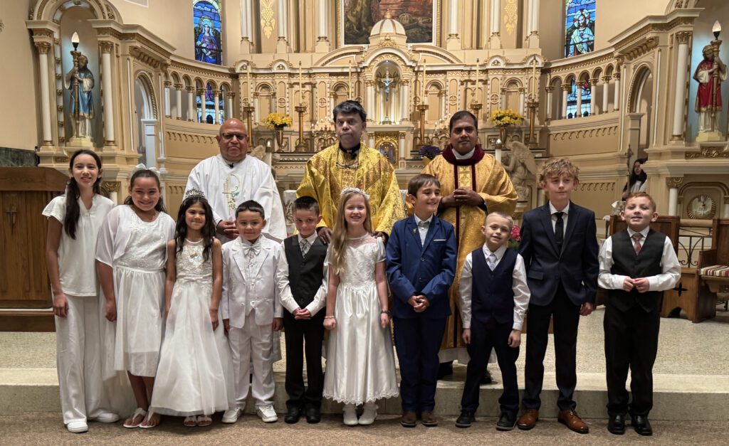 First Holy Communion typically takes place in 2nd grade (provided a child has been baptized in the Catholic faith and has had at least one school year of religious instruction). Religious instruction (General Catechesis Program) may consist of Catholic schooling, Family of Faith at our parish, or a homeschool equivalent that has been approved by the pastor and/or Director of Faith Formation.